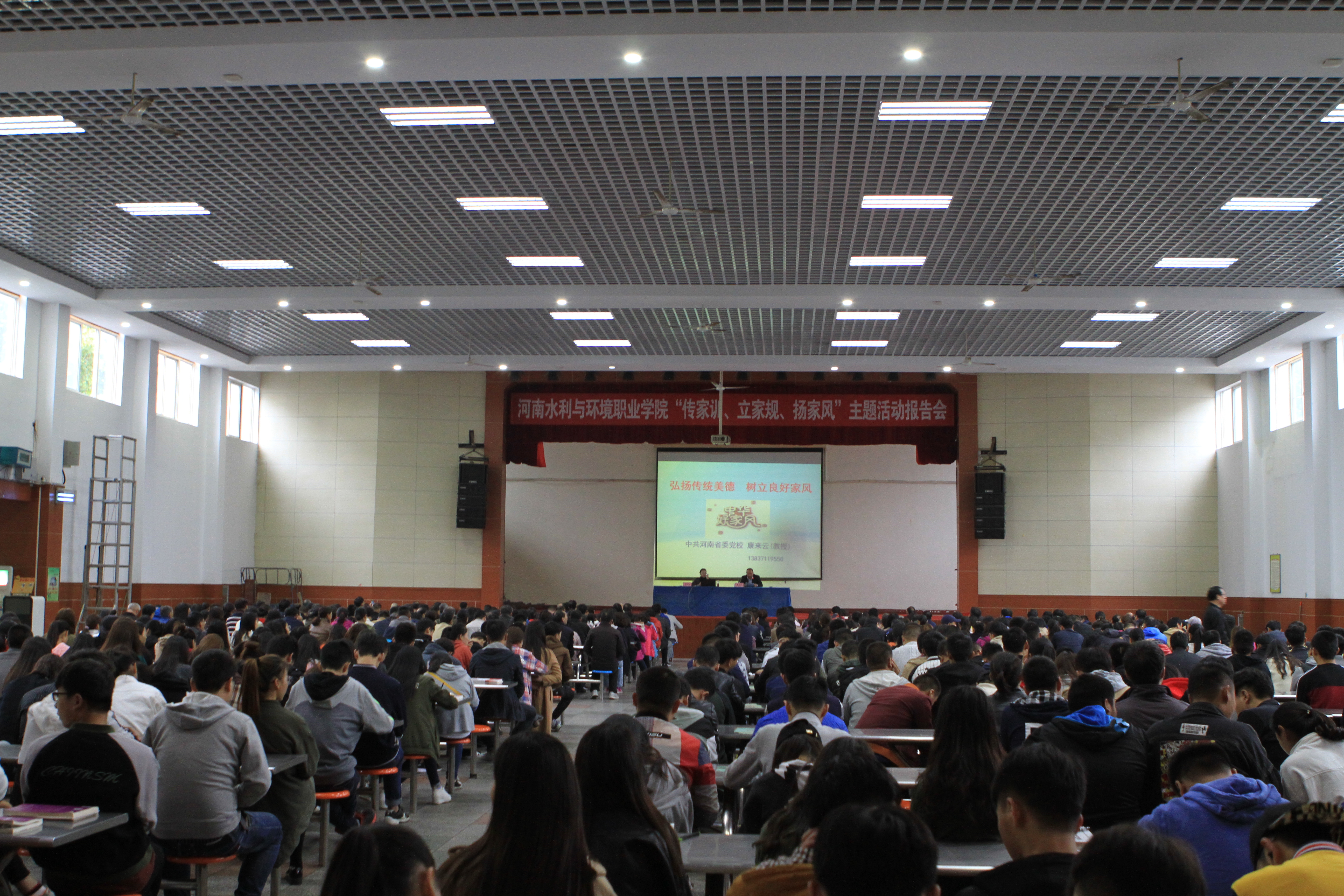 为进一步培育和践行社会主义核心价值观,传承优秀中华文化,大力弘扬中华民族传统美德,深入落实习近平总书记关于“注重家庭、注重家教、注重家风”重要讲话精神,认真贯彻实施《关于指导推进家庭教育的五年规划(2016—2020年)》,助推郑州国家文明城市创建工作,不断深化学校精神文明建设和文明校园建设,促进教职工和学生家长家庭文化建设。我院按照《中央文明办关于广泛开展“传家训、立家规、扬家风”活动的通知》精神和水利部文明委、水利厅文明办要求,10月10日下午,在学院礼堂举办了“传家训、立家规、扬家风”主题活动报告会,特邀中共河南省委党校康来云教授到校作专题辅导报告。院党委书记王立正出席并主持报告会,院长郑志宏及班子成员出席报告会,并与全体教职工及部分学生代表一起听取报告。