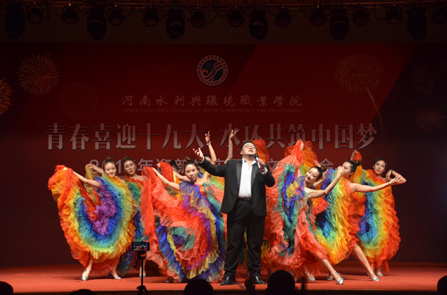 教师为欢迎新生、庆祝华诞、喜迎十九大也精心编排了歌舞表演,由机电与信息工程系主任武凤翔老师